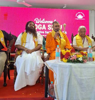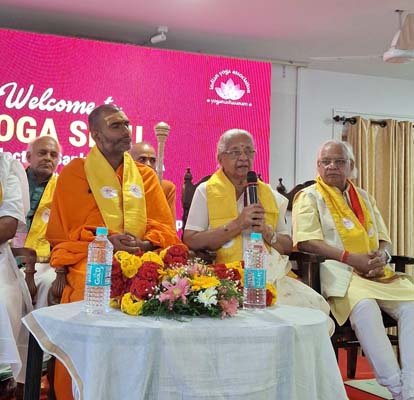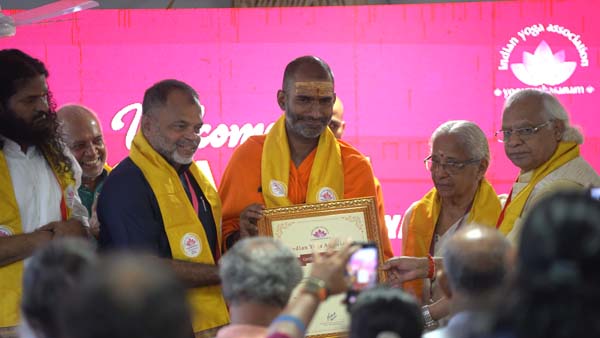 On this occasion, Swami Anandavanam Bharathi was conferred Eminent Membership of the Indian Yoga Association, acknowledging his lifelong contribution to spiritual and yogic pursuits. He also ceremonially distributed Associate Centre Certificates to yoga schools that had enrolled as Associate Centres of IYA, marking an important step towards institutional strengthening and national integration.