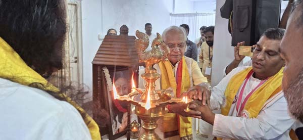 The function was graced by Acharya Maha Mandaleshwar Swami Anandavanam Bharathi of Juna Akhada, Varanasi, whose presence sanctified the occasion. He was joined by Swami Chidakasha of The Art of Living Foundation, lending further spiritual depth to the gathering.